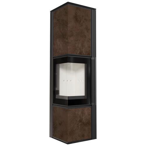 TORA to nowoczesny piec stalowy na drewno wykończony wykończony płytą ze spieku kwarcowegoi dwustronnym przeszkleniem. Wyposażony jest w narożne drzwi ozdobione czernionym przeszkleniem celem pogłębienia wizji ognia. Piec posiada wygodny uchwyt w formie relingu do otwierania drzwi. Jest to piec, który oferuje wygodę i bezpieczeństwo użytkowania, przy jednoczesnym nowoczesnym designie.