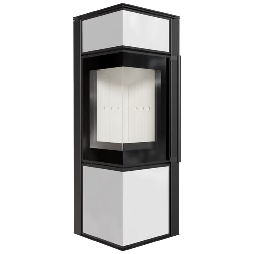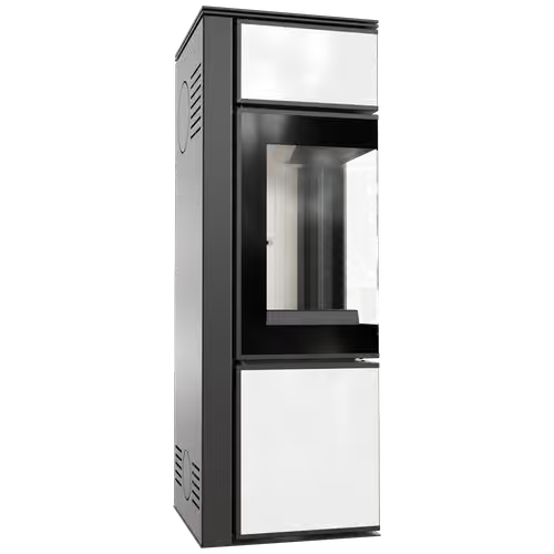 TORA to nowoczesny piec stalowy na drewno wykończony panelami szklanymi w kolorzebiałym i dwustronnym przeszkleniem. Wyposażony jest w narożne drzwi ozdobione czernionym przeszkleniem celem pogłębienia wizji ognia. Piec posiada wygodny uchwyt w formie relingu do otwierania drzwi. Jest to piec, który oferuje wygodę i bezpieczeństwo użytkowania, przy jednoczesnym nowoczesnym designie.