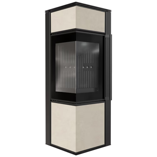 TORA to nowoczesny piec stalowy na drewno wykończony wykończony płytą ze spieku kwarcowegoi dwustronnym przeszkleniem. Wyposażony jest w narożne drzwi ozdobione czernionym przeszkleniem celem pogłębienia wizji ognia. Piec posiada wygodny uchwyt w formie relingu do otwierania drzwi. Jest to piec, który oferuje wygodę i bezpieczeństwo użytkowania, przy jednoczesnym nowoczesnym designie.