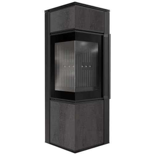 TORA to nowoczesny piec stalowy na drewno wykończony wykończony płytą ze spieku kwarcowegoi dwustronnym przeszkleniem. Wyposażony jest w narożne drzwi ozdobione czernionym przeszkleniem celem pogłębienia wizji ognia. Piec posiada wygodny uchwyt w formie relingu do otwierania drzwi. Jest to piec, który oferuje wygodę i bezpieczeństwo użytkowania, przy jednoczesnym nowoczesnym designie.