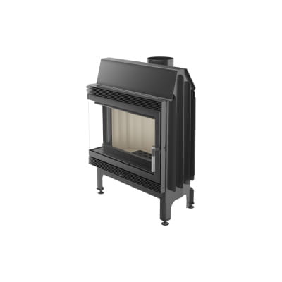 Wkład kominkowy z dwoma szybami zestawionymi ze sobą pod kątem prostym (szyby łączone bez szprosa).
