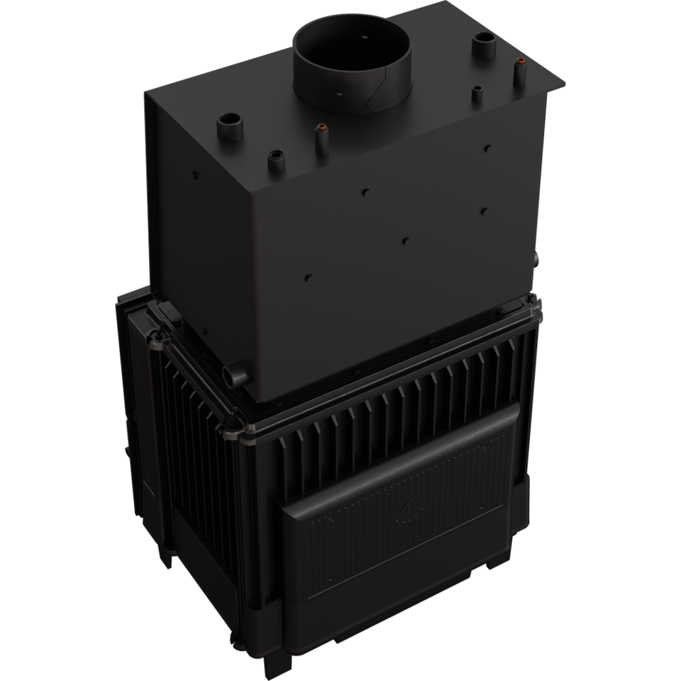 Wkład kominkowy FRANEK 12 z nasadą wodną i wężownicą to swoista hybryda, która łączy funkcje typowego kominka powietrznego wraz z możliwościami kominka wodnego. Na czopuchu paleniska trwale umieszczono nasadę z płaszczem wodnym i wężownicą, tworząc tym samym spójne urządzenie grzewcze.