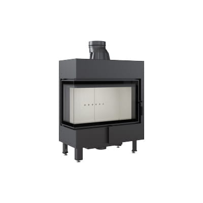 Wkład o ciekawym kształcie, z bocznym przeszkleniem. Dzięki dwustronnej wizji ognia i delikatnej ramie frontowej doskonale wpisuje się w stylistykę nowoczesnych wnętrz. Tego typu kominek jest często wybierany w przypadku otwartych pomieszczeń, w których łączone są różne przestrzenie, np. salon z jadalnią. Zastosowana w kominku specjalnie profilowana płyta dolna sprawia, że mieści on w sobie większą ilość drewna. Nowoczesne rozwiązania zastosowane w urządzeniu gwarantują oszczędność energii i sprawiają, że jego obsługa i czyszczenie są bezproblemowe.