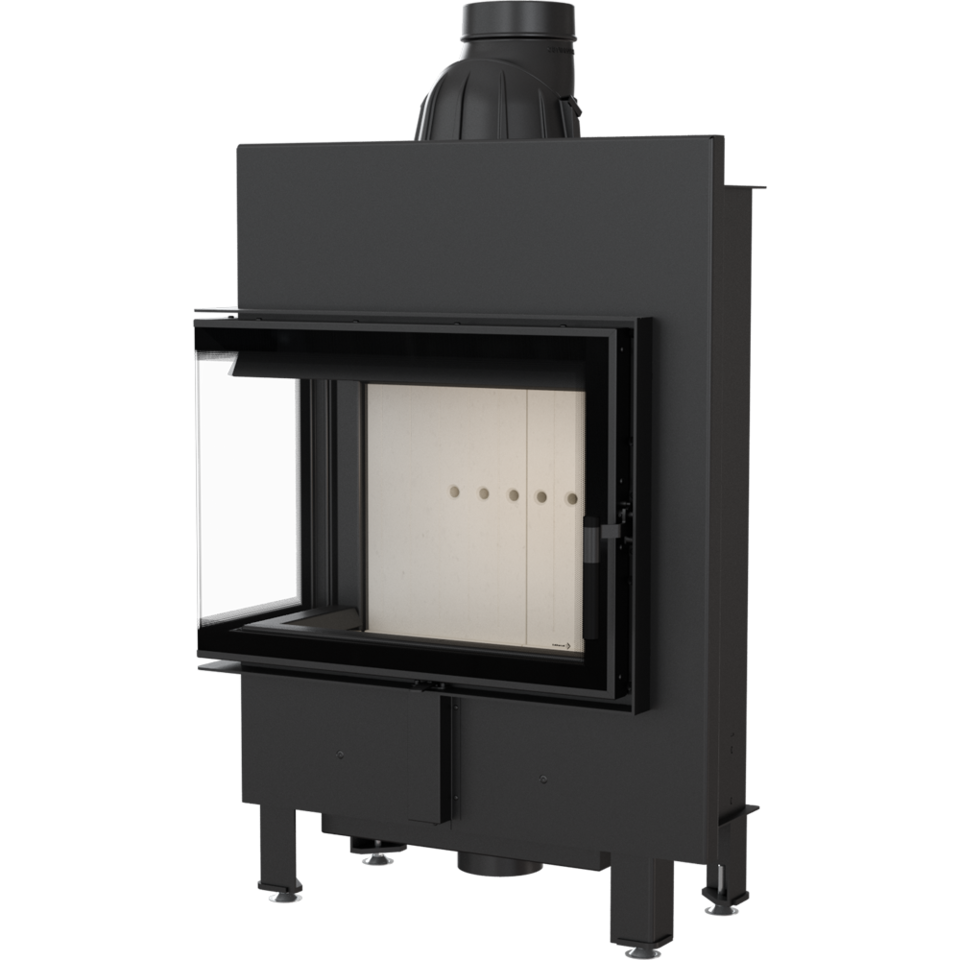 Wkład o ciekawym kształcie z bocznym przeszkleniem, z płytką komorą spalania, dzięki czemu doskonale sprawdzi się w salonach o niewielkiej powierzchni oraz małym zapotrzebowaniu na moc grzewczą. Dzięki dwustronnej wizji ognia i delikatnej ramie frontowej doskonale wpisuje się w stylistykę nowoczesnych wnętrz.Nowoczesne rozwiązania zastosowane w kominku gwarantują oszczędność energii i sprawiają, że obsługa i czyszczenie urządzenia są bezproblemowe.
