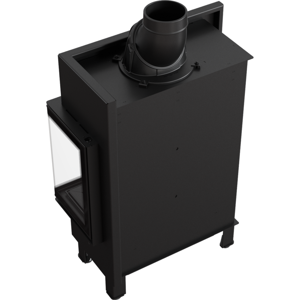 Wkład o ciekawym kształcie z bocznym przeszkleniem, z płytką komorą spalania, dzięki czemu doskonale sprawdzi się w salonach o niewielkiej powierzchni oraz małym zapotrzebowaniu na moc grzewczą. Dzięki dwustronnej wizji ognia i delikatnej ramie frontowej doskonale wpisuje się w stylistykę nowoczesnych wnętrz.Nowoczesne rozwiązania zastosowane w kominku gwarantują oszczędność energii i sprawiają, że obsługa i czyszczenie urządzenia są bezproblemowe.