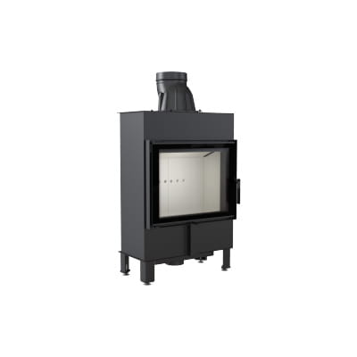 W kominku zastosowano specjalnie profilowaną płytę dolną wykonaną z Acumotte, dzięki czemu komora spalania jest głębsza i mieści większą ilość drewna. Jednocześnie zastosowano skróconą komorę paleniska, co wpływa na mniejszą moc wkładu. Dzięki temu doskonale sprawdzi się on w salonach o niewielkich gabarytach.