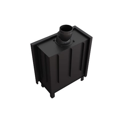 Dodatkowo we wkładzie zastosowany jest system czystej szyby (kurtyna powietrza), czyli powietrze dostarczane jest bezpośrednio na szybę poprzez system kanałów umieszczonych na bokach kominka. W ten sposób dostarczany jest tlen do górnej części komory spalania, w której następuje dopalanie gazów powstałych w procesie spalania drewna, co dodatkowo ogranicza emisję szkodliwego CO do atmosfery.