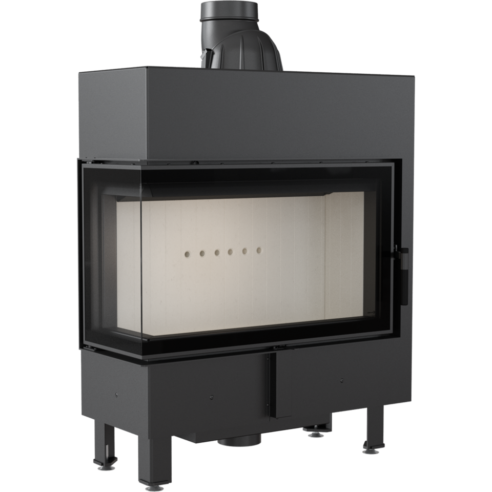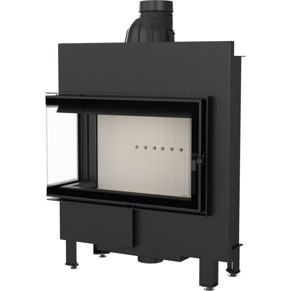 Wkład o ciekawym kształcie z bocznym przeszkleniem, z płytką komorą spalania, dzięki czemu doskonale sprawdzi się w salonach o niewielkiej powierzchni oraz małym zapotrzebowaniu na moc grzewczą. Dzięki dwustronnej wizji ognia i delikatnej ramie frontowej doskonale wpisuje się w stylistykę nowoczesnych wnętrz.Nowoczesne rozwiązania zastosowane w kominku gwarantują oszczędność energii i sprawiają, że obsługa i czyszczenie urządzenia są bezproblemowe.