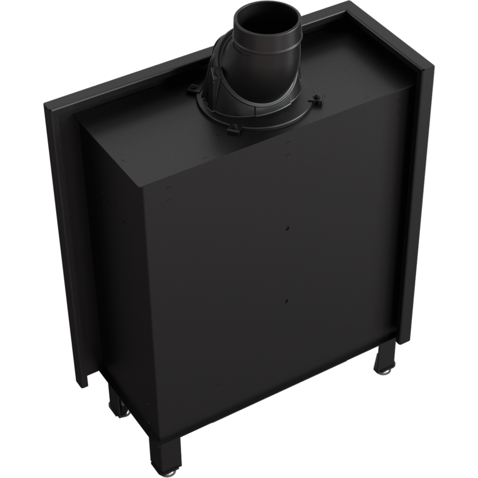 Dodatkowo we wkładzie zastosowany jest system czystej szyby (kurtyna powietrza), czyli powietrze dostarczane jest bezpośrednio na szybę poprzez system kanałów umieszczonych na bokach kominka. W ten sposób dostarczany jest tlen do górnej części komory spalania, w której następuje dopalanie gazów powstałych w procesie spalania drewna, co dodatkowo ogranicza emisję szkodliwego CO do atmosfery.
