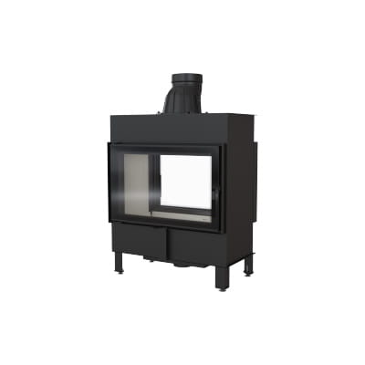 Dodatkowo we wkładzie zastosowany jest system czystej szyby (kurtyna powietrza), czyli powietrze dostarczane jest bezpośrednio na szybę poprzez system kanałów umieszczonych na bokach kominka. W ten sposób dostarczany jest tlen do górnej części komory spalania, w której następuje dopalanie gazów powstałych w procesie spalania drewna, co dodatkowo ogranicza emisję szkodliwego CO do atmosfery.
