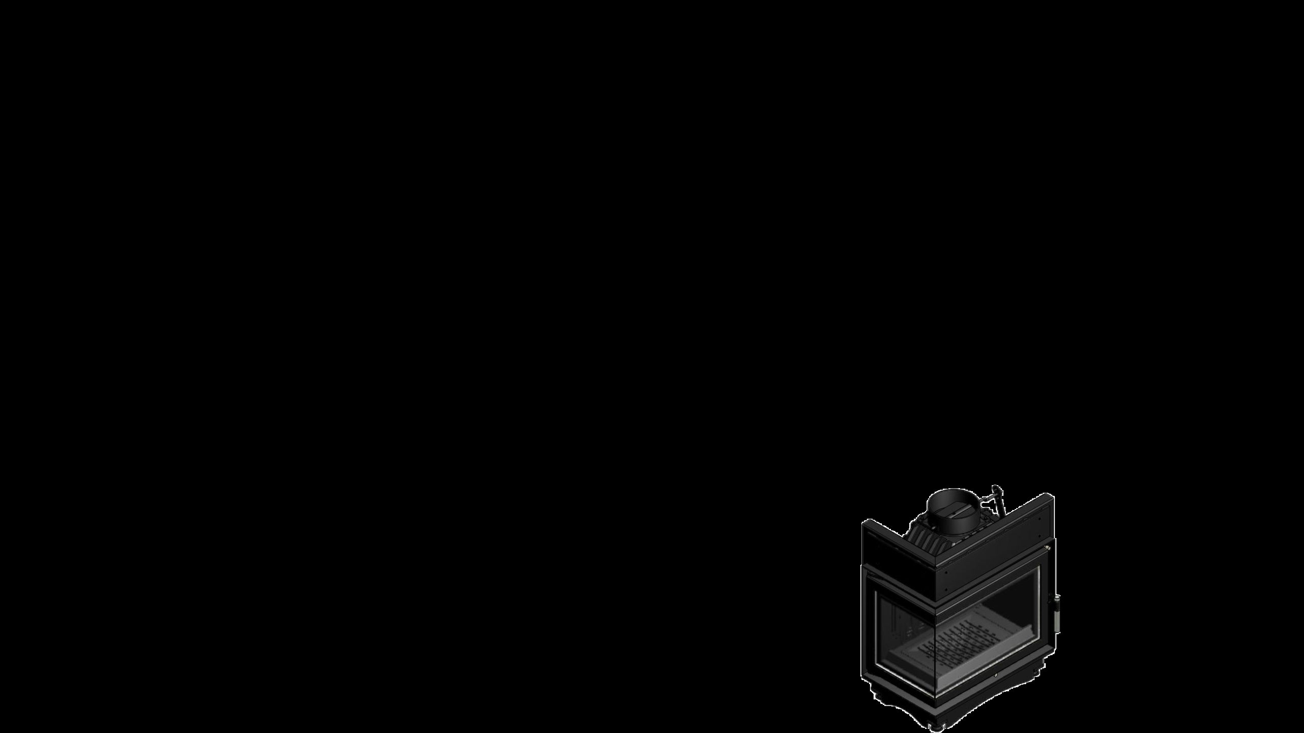 Wkład kominkowy z dwoma szybami zestawionymi ze sobą pod kątem prostym (szyby łączonebez szprosa).