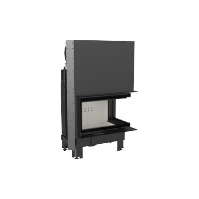 Wkład kominkowy z dwoma szybami zestawionymi ze sobą pod kątem prostym (szyby łączonebez szprosa).