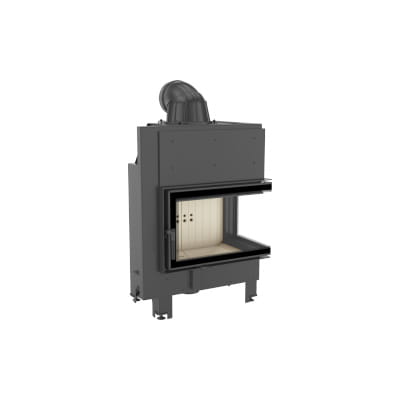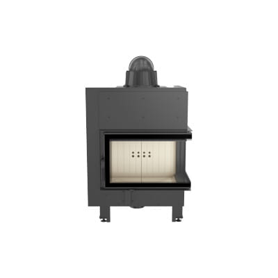 Wkład kominkowy z dwoma szybami zestawionymi ze sobą pod kątem prostym (szyby łączonebez szprosa).