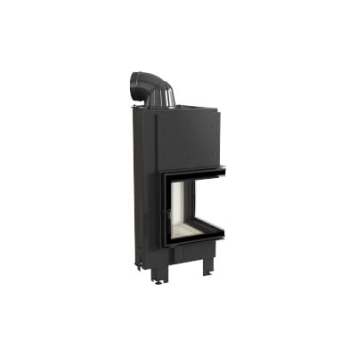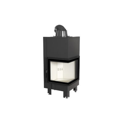 Wkład kominkowy z dwoma szybami zestawionymi ze sobą pod kątem prostym (szyby łączonebez szprosa).