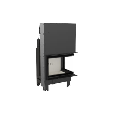 Wkład kominkowy z dwoma szybami zestawionymi ze sobą pod kątem prostym (szyby łączonebez szprosa).
