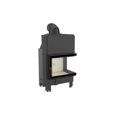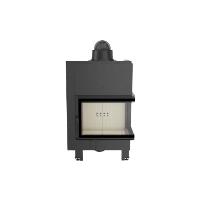 Wkład kominkowy z dwoma szybami zestawionymi ze sobą pod kątem prostym (szyby łączonebez szprosa).