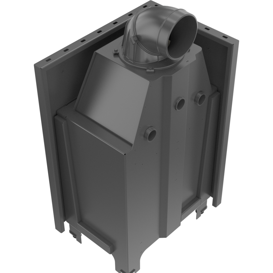 Wysoki czopuch i poprzecznie umieszczone płomieniówki – zwiększają powierzchnię wymiany ciepła pomiędzy wkładem a otoczeniem. Obniżenie temperatury spalin przyczynia się do zwiększenia sprawności urządzenia.