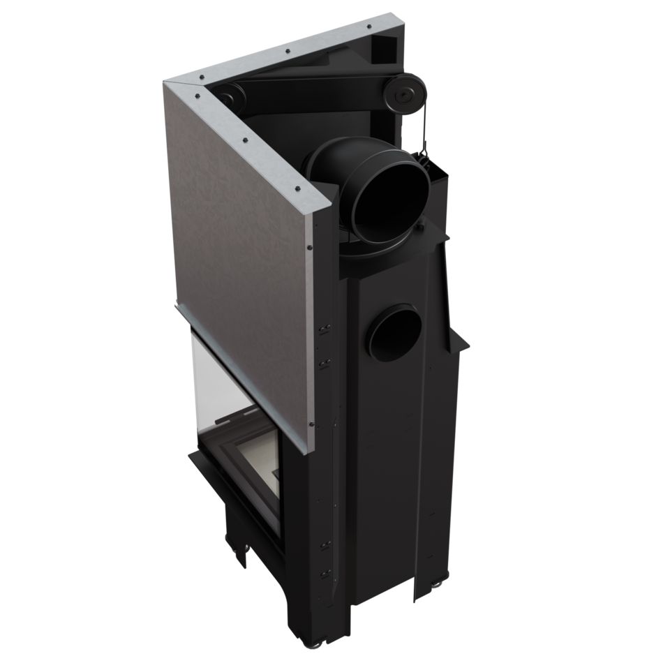 Dostarczanie powietrza pierwotnego do wkładu odbywa sięz zewnątrz, dzięki wbudowanemu króćcowi dolotu powietrzafi 125 mm. Króciec dolotu powietrza znajduje się w podłodze wkładu. Jego regulacja odbywa się za pomocą wbudowanej przepustnicy ustawianej jednym regulatoremznajdującą się poniżej drzwiczek, co wyklucza błędy w niewłaściwym użytkowaniu. Cały mechanizm działa wewnątrz kominka, bardzo cicho i bezawaryjnie.
