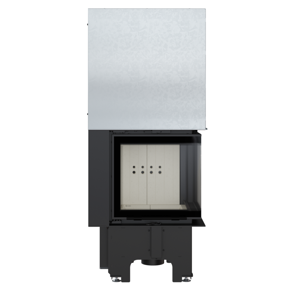 Kominek wyposażony jest w pojedynczą, dekoracyjną szybę typu Glass, dzięki której wygląda elegancko i nowocześnie. Zastosowanie tego rozwiązania optycznie powiększa front wkładu i podkreśla wizję ognia.