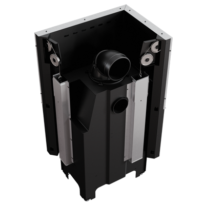 System rewizji wewnętrznej umożliwia prowadzenie działań serwisowych od wewnątrz paleniska bez konieczności niszczenia zabudowy kominka.
