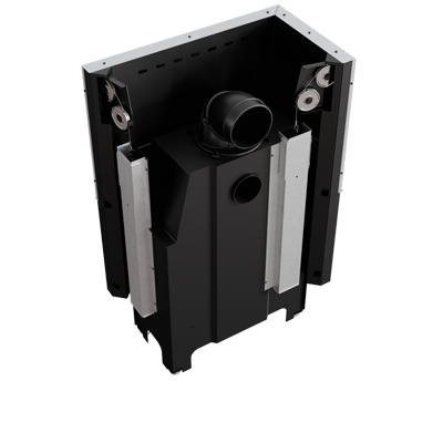 System rewizji wewnętrznej umożliwia prowadzenie działań serwisowych od wewnątrz paleniska bez konieczności niszczenia zabudowy kominka.