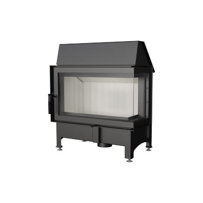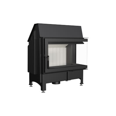Wkład kominkowy z dwoma szybami zestawionymi ze sobą pod kątem prostym (szyby łączonebez szprosa).