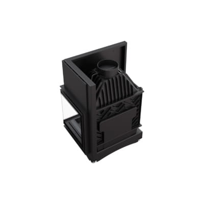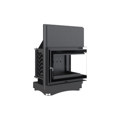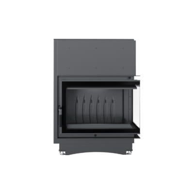 Nowoczesny front wkładu wykonany ze stali, wyposażony w dekoracyjną ceramikę żaroodporną wytrzymującą temperaturę do 800°C. Zamontowane szkło posiada certyfikat jakości i bezpieczeństwa. Ozdobna szyba typu glass, nie tylko wygląda elegancko i nowocześnie, ale przede wszystkim zastosowanie tego rozwiązania optycznie powiększa front wkładu i podkreśla wizję ognia. Rama drzwi wykonana jest z zamkniętego profilu, co sprawia, że są one stabilne i wytrzymałe na naprężenia występujące podczas pracy w wysokich temperaturach.