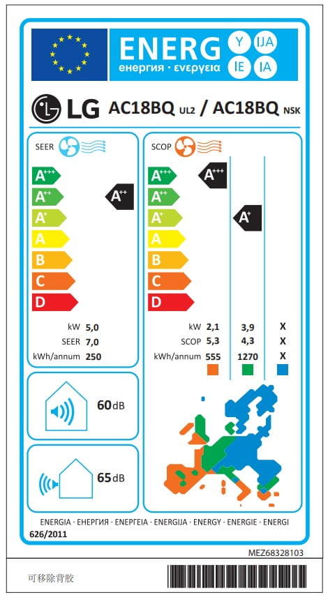 | Klasa efektywności energetycznej Erp dla chłodzenia | A++ |