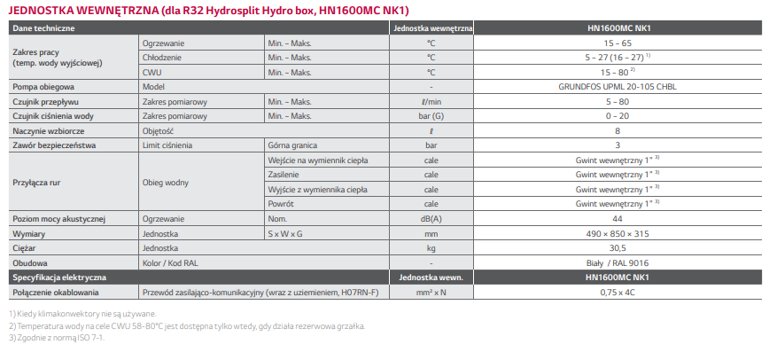 | Rodzaj konstrukcji pompy ciepła | Hydrosplit |