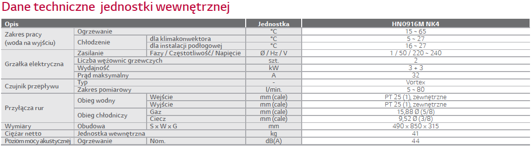 | Przeznaczenie | ogrzewanie; chłodzenie; przygotowanie C.W.U |
