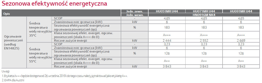 Kombinacja sprężarki R1 i czynnika chłodniczego R32 powoduje, że produkt ten może się szczycić wartością 4,65 wskaźnika sezonowej efektywności (SCOP) w trybie ogrzewania oraz etykietą A+++ dla produktów związanych z energią (ErP).