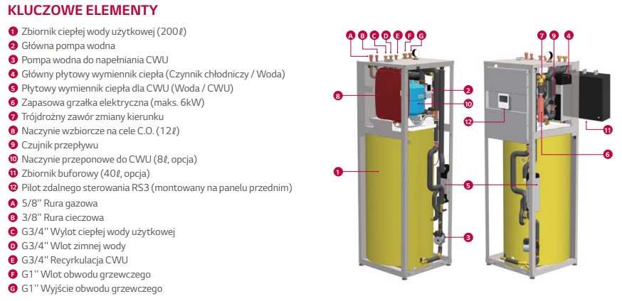 LG THERMA V SPLIT ZE ZINTEGROWANYM ZASOBNIKIEM – BUDOWA ORAZ ELEMENTY OPCJONALNE