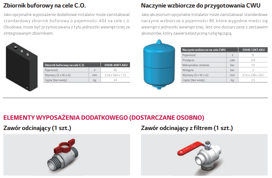 | Przeznaczenie | ogrzewanie; chłodzenie; przygotowanie C.W.U |