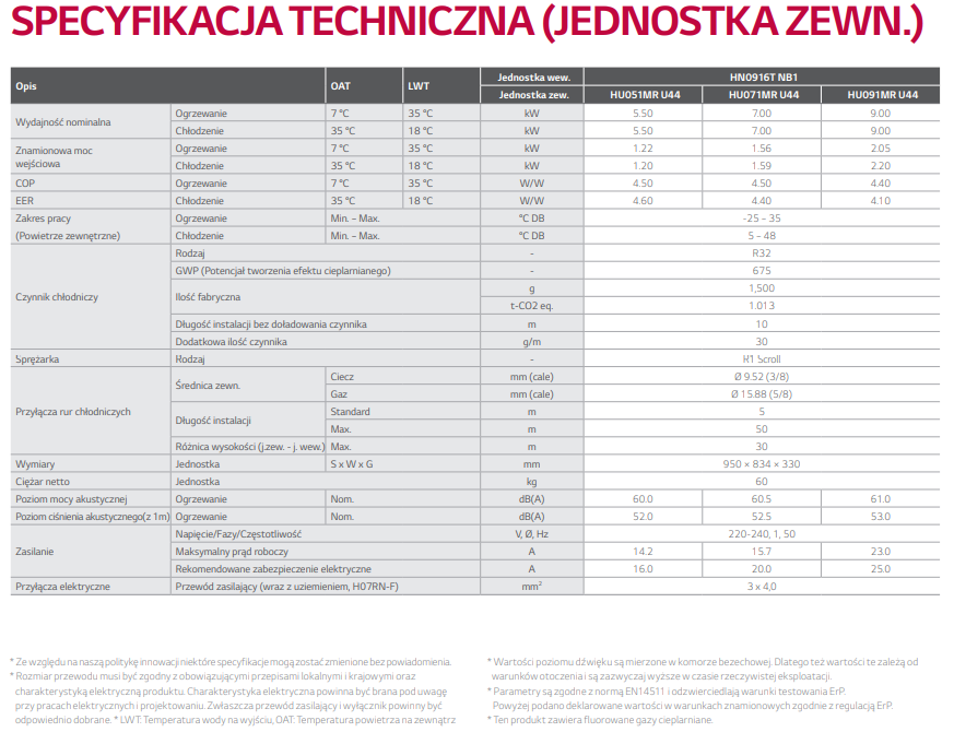Jednostka zewnętrzna: HU091MR.U44 – czynnik roboczy R32