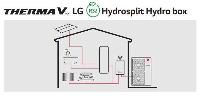 Seria pomp ciepła LG THERMA V Hydrosplit rozdziela jednostkę wewnętrzną i zewnętrzną łącząc je za pomocą rur wodnych. Wymiennik ciepła jest umieszczony w jednostce zewnętrznej, co zmniejsza ryzyko wycieku czynnika chłodniczego w pomieszczeniu. THERMA V R32 Hydrosplit IWT (ze zintegrowanym zbiornikiem CWU) to urządzenie do zaopatrywania w ciepłą wodę użytkową, ogrzewania i chłodzenia pomieszczeń. Rozwiązanie to w wygodny sposób łączy wewnętrzny zbiornik ciepłej wody z oddzielną jednostką zewnętrzną. Z kolei Hydrosplit w wersji Hydro box to rozwiązanie zapewniające ogrzewanie i chłodzenie pomieszczeń z wysoką elastycznością instalacji dzięki możliwości możliwość montażu na ścianie.