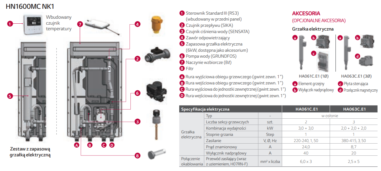 - Zintegrowana zapasowa grzałka elektryczna o mocy 6kW dostępna jako akcesorium