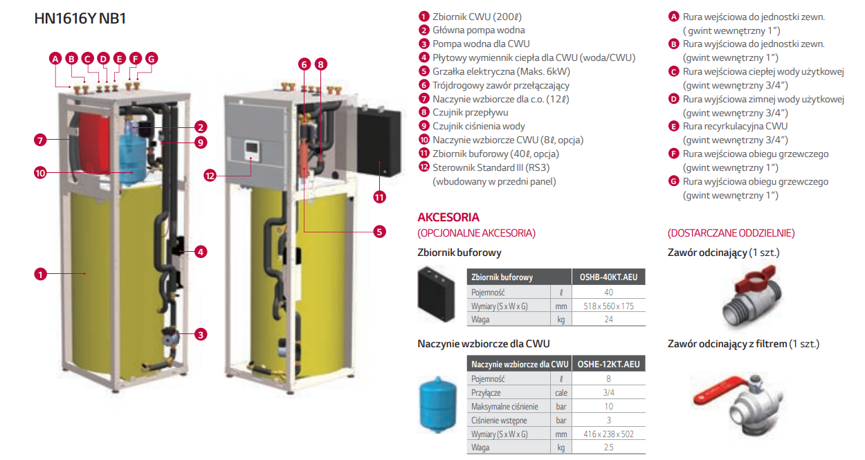 - Zbiornik buforowy (40ℓ) oraz naczynie wzbiorcze dla CWU (8ℓ) dostępne jako opcja