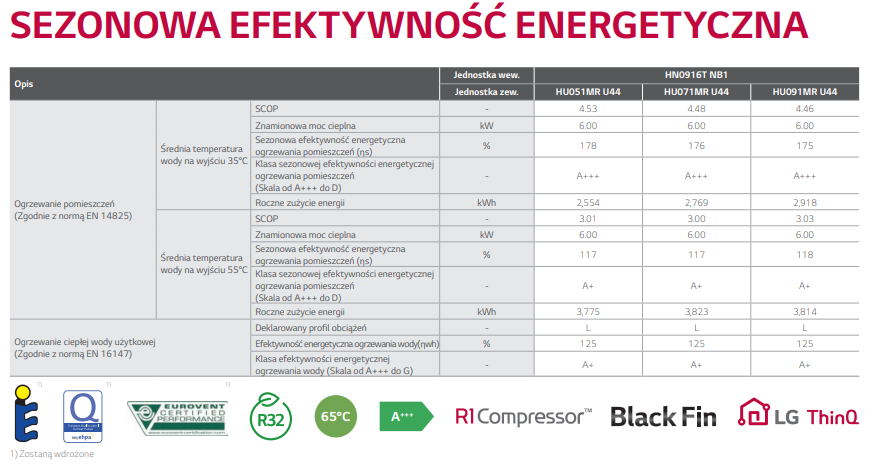 Kombinacja sprężarki R1 i czynnika chłodniczego R32 powoduje, że produkt ten może się szczycić wartością 4,65 wskaźnika sezonowej efektywności (SCOP) w trybie ogrzewania oraz etykietą A+++ dla produktów związanych z energią (ErP).