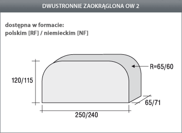 LODE Kształtka klinkierowa dwustronnie zaokrąglona OW 2 pełna kolor Etna RF 250x120x65 mm