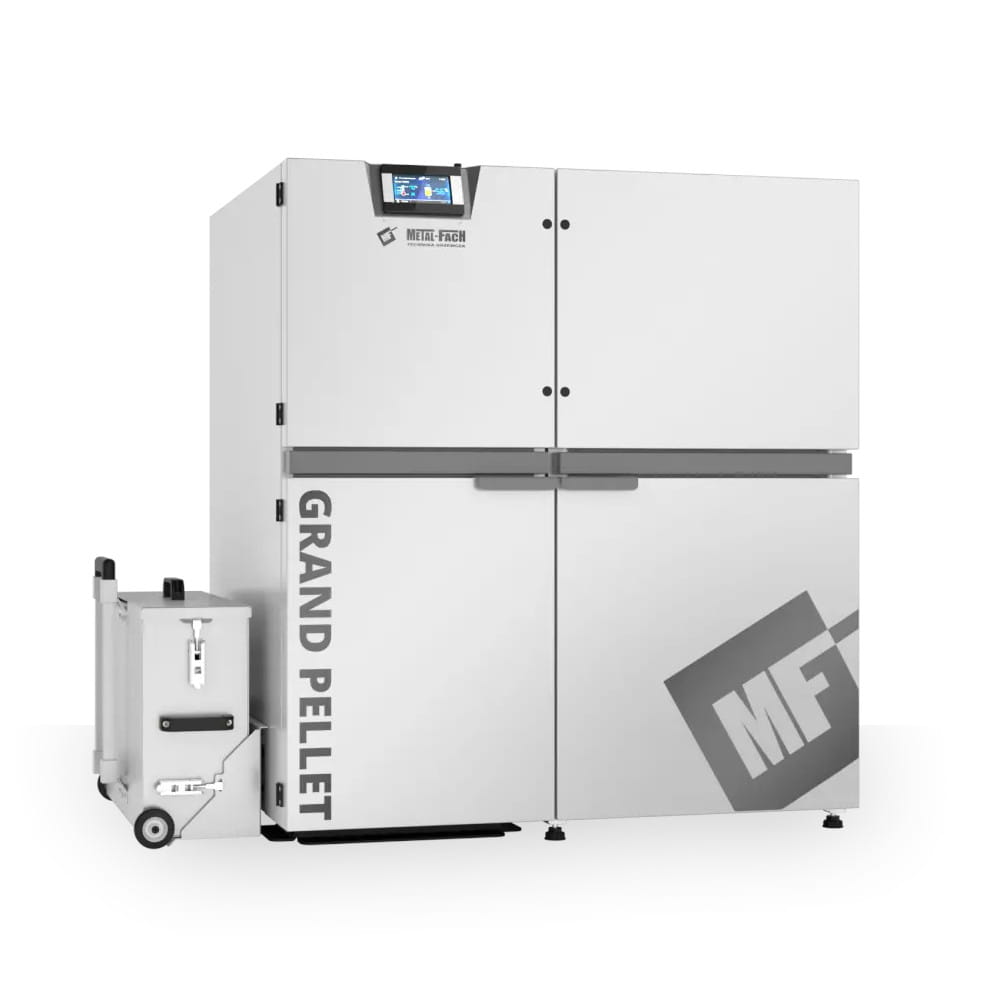 METAL-FACH GRAND PELLET KOCIOŁ PELLETOWY Z AUTOMATYCZNYM PODAJNIKIEM PO PRAWEJ STRONIE 15 KW – CZOPUCH DO TYŁU