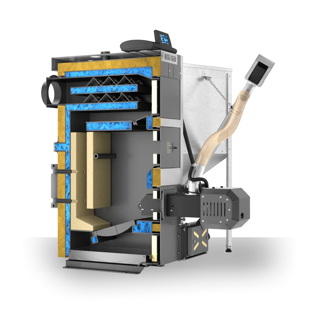 - Automatyczne usuwanie popiołu i osadów – mechanizm czyszczący regularnie usuwa nagromadzone osady, zapewniając optymalne warunki spalania.