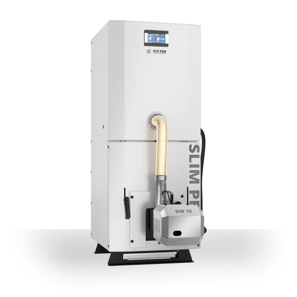 METAL-FACH SLIM PELLET KOMPAKTOWY KOCIOŁ PELLETOWY Z AUTOMATYCZNYM PODAJNIKIEM 10 KW – CZOPUCH DO TYŁU