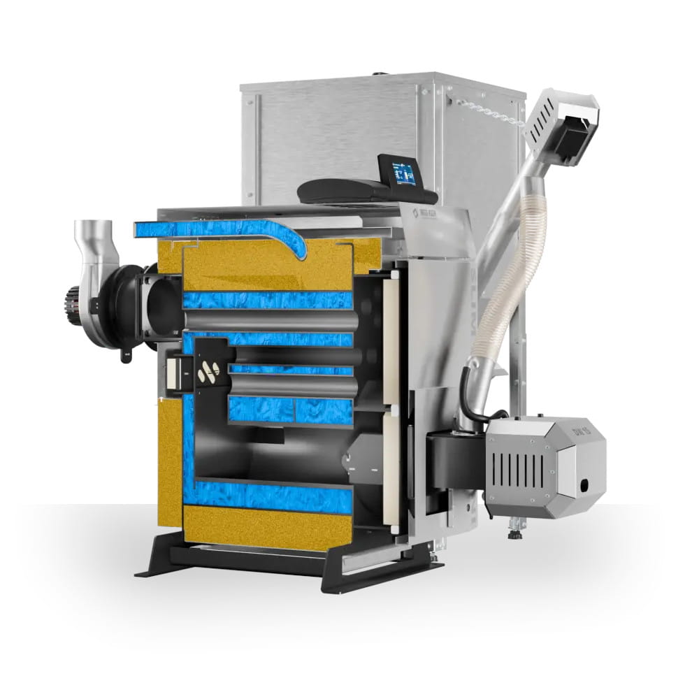 Automatyzacja procesów takich jak podawanie paliwa, czyszczenie palnika czy odpopielanie sprawia, że nasze urządzenie staje się inteligentnym wsparciem w codziennej obsłudze kotła. Dzięki automatyzacji tych procesów obsługa jest prosta i nie wymaga Twojego zaangażowania w codzienną obsługę urządzenia.