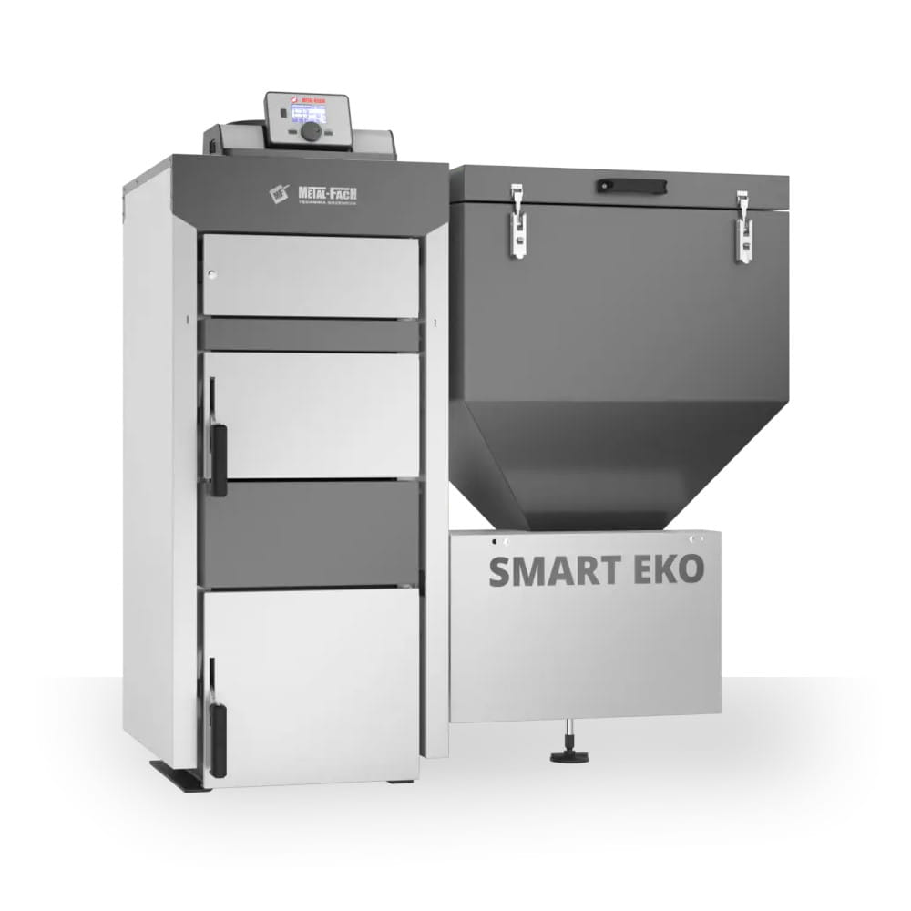 METAL-FACH SMART EKO KOCIOŁ NA WĘGIEL GROSZEK Z AUTOMATYCZNYM PODAJNIKIEM PO PRAWEJ STRONIE 12 KW – CZOPUCH DO GÓRY LUB DO TYŁU