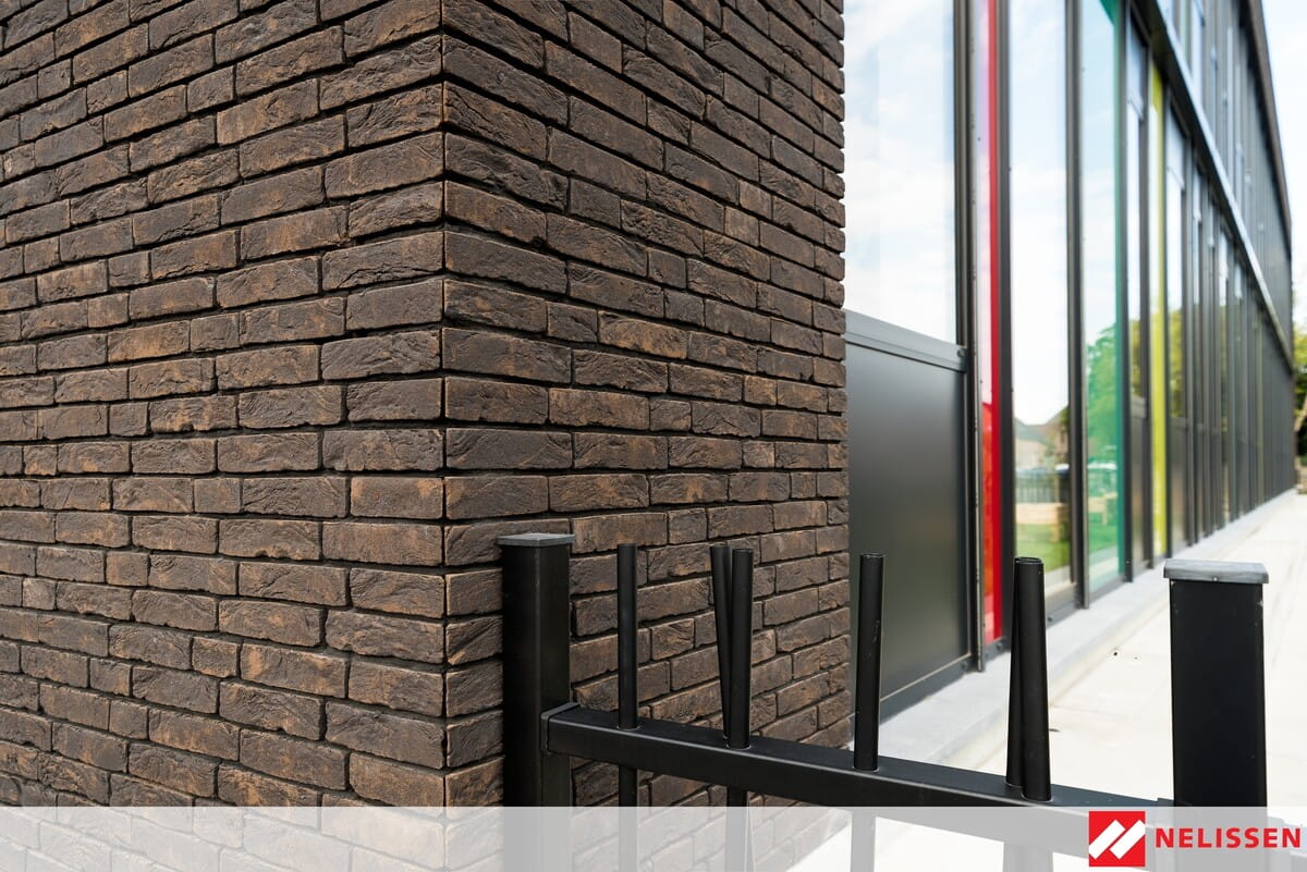 MANGANESE BLACK – Ręcznie formowana cegła licowa do ciemnej ściany.Za czarny kolor cegły odpowiada jednorodna mieszanina ściśle określonych proporcji tlenku manganu z szaro-czerwoną wypalaną glinką. Kolor waha się głównie od grafitowego do smolistej czerni.Cegły elewacyjne mają pięć boków pokrytych piaskiem i jedną stronę z możliwym podłużnym rowkiem. Struktura wygląda na szorstką z drobnymi i nieregularnymi rowkami w piaszczystej powierzchni. Proces pieczenia odbywa się w ogrzewanym gazem piecu tunelowym w lekko obniżonej atmosferze.Ręcznie formowane cegły renomowanego belgijskiego producenta NELISSEN to produkt o bardzo wysokiej jakości, wytrzymały na warunki atmosferyczne i występujący w bardzo bogatej kolorystyce i stylach i różnych wymiarach. Cegła ręcznie formowana jest wyjątkowo trwałym, naturalnym produktem o ponadczasowym uroku i niepowtarzalnym charakterze.Ceglana elewacja dodaje elegancji i klasy dla każdego domu, w stylu nowoczesnym czy tradycyjnym, zapewnia jednocześnie bardzo dobrą izolację oraz nie wymaga konserwacji. Cegły są też używane we wnętrzach do obudowy kominków czy ścian i tworzą niepowtarzalny klimat w każdym stylu, a powierzchnie wykonane z cegły nie wymagają konserwacji ani malowania. Ściany zewnętrzne można zaimpregnować środkami hydrofobizującymi. Z tych właśnie cegieł wycinane są płytki i narożniki jako alternatywa dla osób chcących zastosować je jako okładzinę ścienną i nie tracić zbyt dużo powierzchni, gdyż grubość płytek i narożników to tylko ok. 2 cm.Powstają poprzez odcięcie lica od cegły, zachowując tym samym jej oryginalny wygląd i właściwości, dlatego każda płytka jest inna i powierzchnia wyłożona nimi daje wrażenie ściany wykonanej z całych cegieł. Nadają się zarówno do obłożenia ścian zewnętrznych na elewacji ( nie ma konieczności budowy fundamentu) jak i do zastosowania we wnętrzach. Montaż ich jest bardzo łatwy a efekt końcowy zachwyca oryginalnością i naturalnością. Współczesne trendy w aranżacji wnętrz stawiają na naturalne akcenty i dzięki zastosowaniu ceglanych okładzin można stworzyć wspaniałe wnętrza w każdym stylu, a bogata kolorystyka zapewnia każdemu możliwość dobrania ich do istniejących kolorów we wnętrzach.