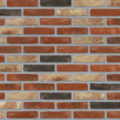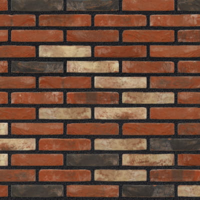 Cegła ma czerwoną podstawę z elementami od pomarańczowo-czerwonych, poprzez biało-beżowe, aż do jaskrawej czerwieni w dokładnie określonych proporcjach.