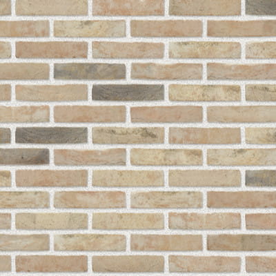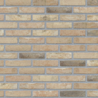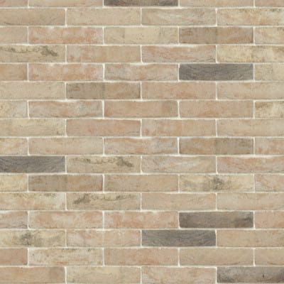 Cegła ma beżowo-różową podstawę z odcieniami od łososiowo-różowego do żółto-beżowego.
