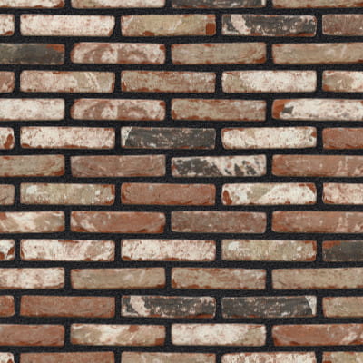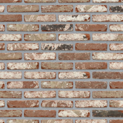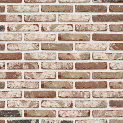 Podstawa cegły jest czerwona z elementami od czerwono-beżowego i szaro-białego. Na cegle widoczne są czarne i białe osady. Proces postarzania wpływa również na odcienie kolorów.