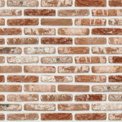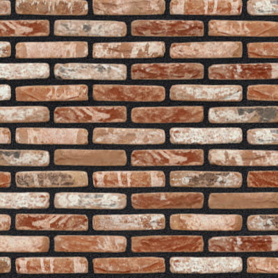 Cegła ma różową podstawę, z elementami od pomarańczowo-czerwonego do fioletowo-czerwonego na przemian z żółtymi i niebiesko-szarymi odcieniami w dokładnie określonych proporcjach.