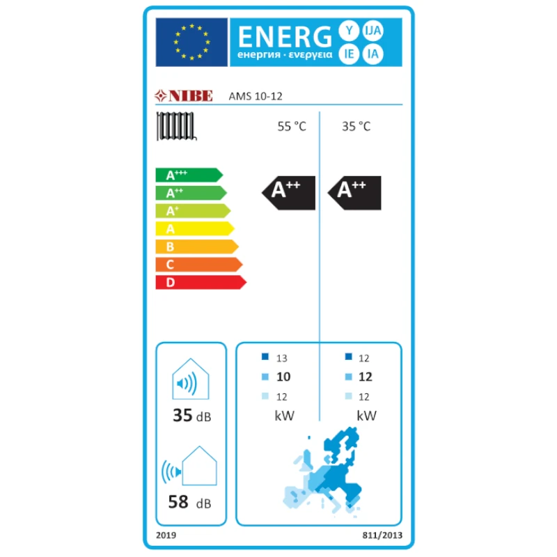- SCOP 5,08 (dot. NIBE AMS 20-6, klimat umiarkowany, 35oC)